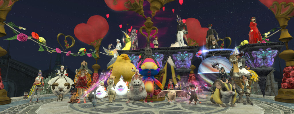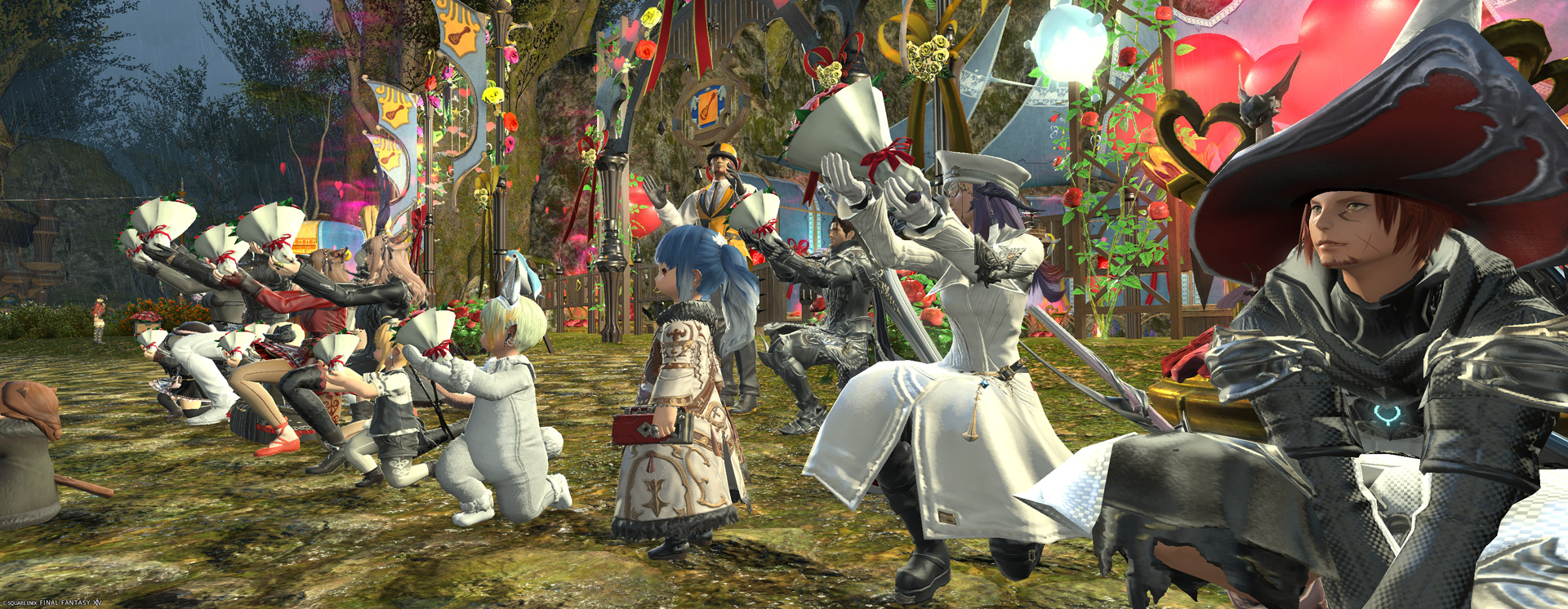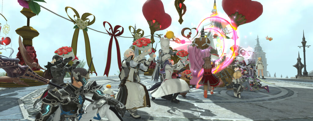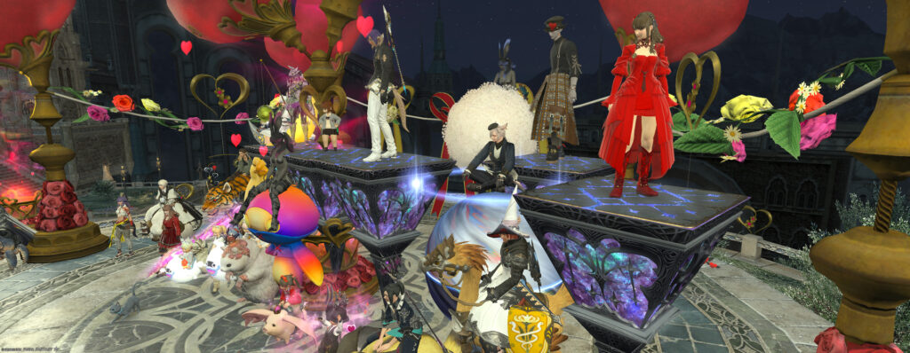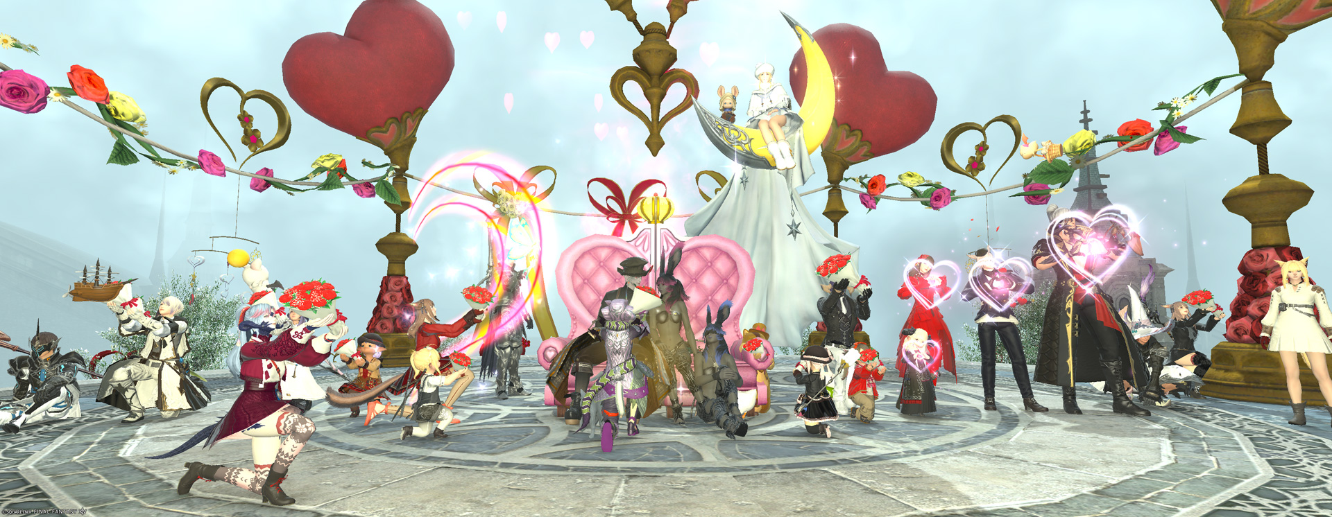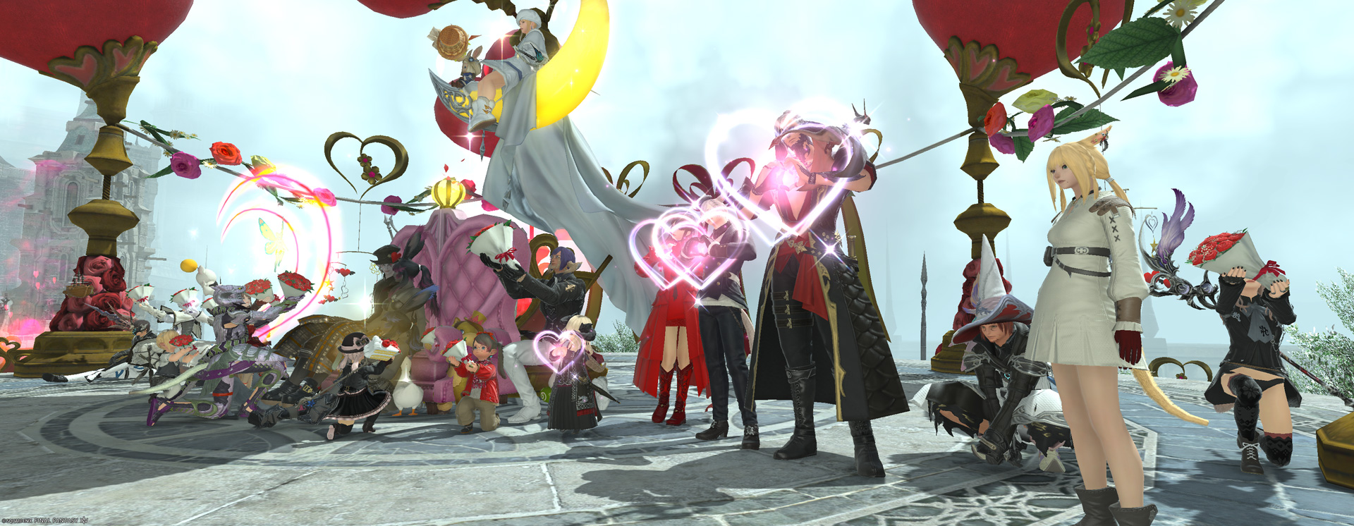 今回の「花束エモート」は良い感じですね~。永続エモートなので、なにかと使い所が有る感じでいいです。エタバンとかでも使えるだろうねぇ~(*´ω`*) あとグルポ入った瞬間に止めれば、立った状態で花束持ってて、それもまたいいらしい!